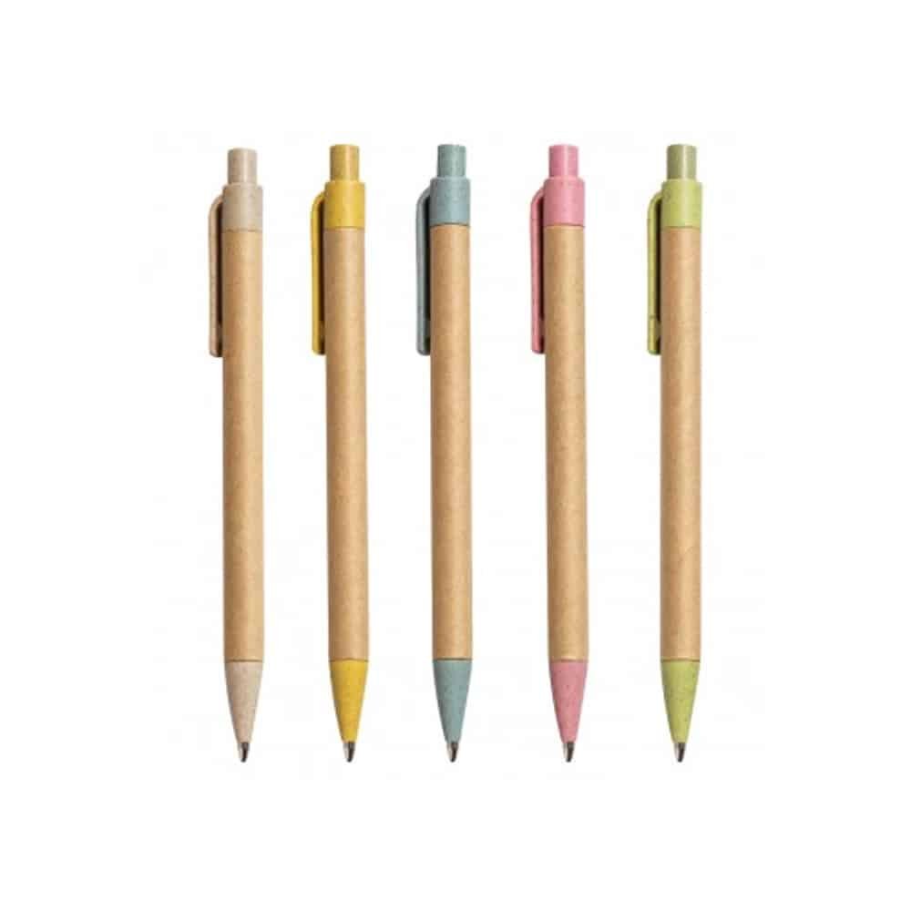 Bolígrafo con cuerpo de cartón y detalles en ABS y paja de trigo. 100% amigable con el planeta.