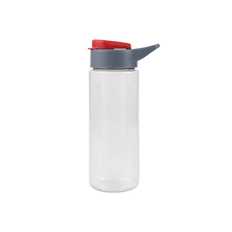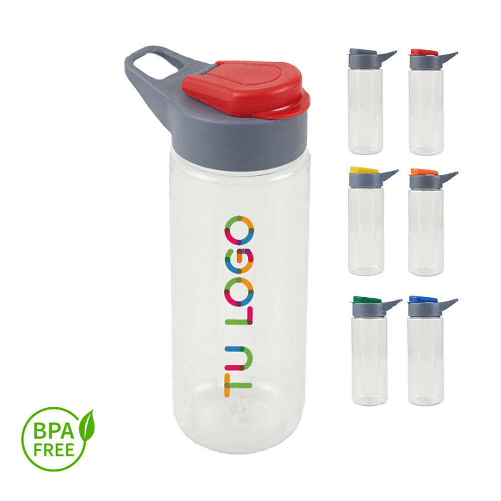 Botella transparente reutilizable de PET con tapa de Polipropileno, cuenta con un agarre en la tapa para su transporte. Producto aprobado por el I.N.A.L. para el contacto con alimentos. Producto libre de BPA. No es apta para bebidas calientes, lavavajillas ni microondas.